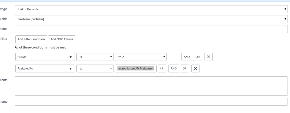 User javascript:getMyAssignments() in reference qualifer.